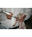vereinfacht die Arbeit, reduziert das Infektionsrisiko erheblich und ist schonend für die Tiere der Schleifer ist über ein Spiralkabel an einen Akku angeschlossen Schleifgeschwindigkeit etwa 20.000 U/min Diamantstein mit Spezialhülle ummantelt, um Zunge und Zahnfleisch des Ferkels vor Verletzungen zu schützen leistungsstarke Batterie mit 18 V /1,5 Ah, ausreichend für ca. 2 Stunden effizientes Schleifen pro Ladung Ladedauer ca. 3 Stunden im Lieferumfang enthalten: Zahnschleifgerät, Akku mit Gürtelhaken, Lade-Netzteil und Tragetasche mit Gurt für Schleifgerät im praktischen Kunststoffkoffer inkl. Schleifkörper und Alu-Schutzkappe