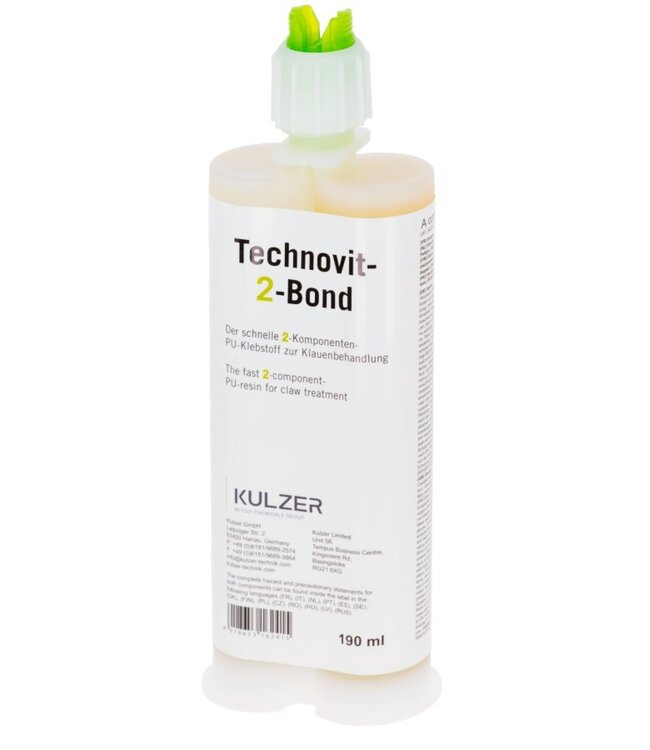Technovit-2-Bond Zweikomponenten-Kleber vereinfacht jede Klauenbehandlung – in nur 30 Sekunden trocknend, nach 3 Minuten belastbar und ohne Anmischen, ideal für Rinder. Präzise Anwendung mit der Technovit Kartusche.